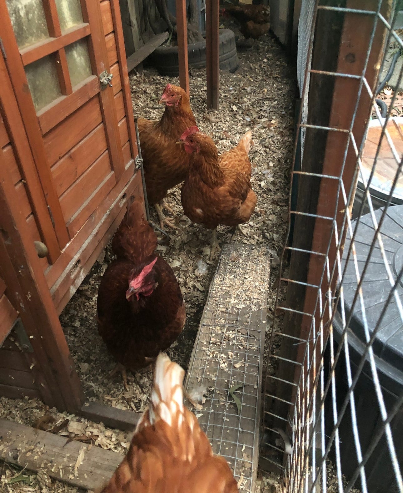 And we shut that again and go back into the house. Now chicken eggs are very, very good for you, and it is very good to have chickens.